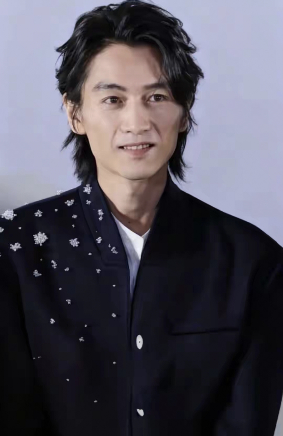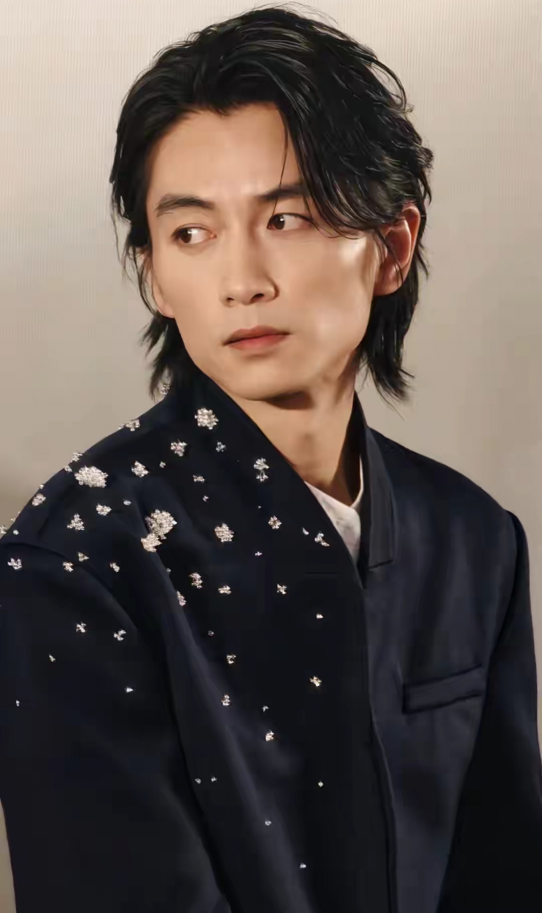 眉眼如锋,骨相完美,如传统东方的艺术品,多情的桃花眼,微垂的唇角,组合一起,又有股说不出的风流不羁。